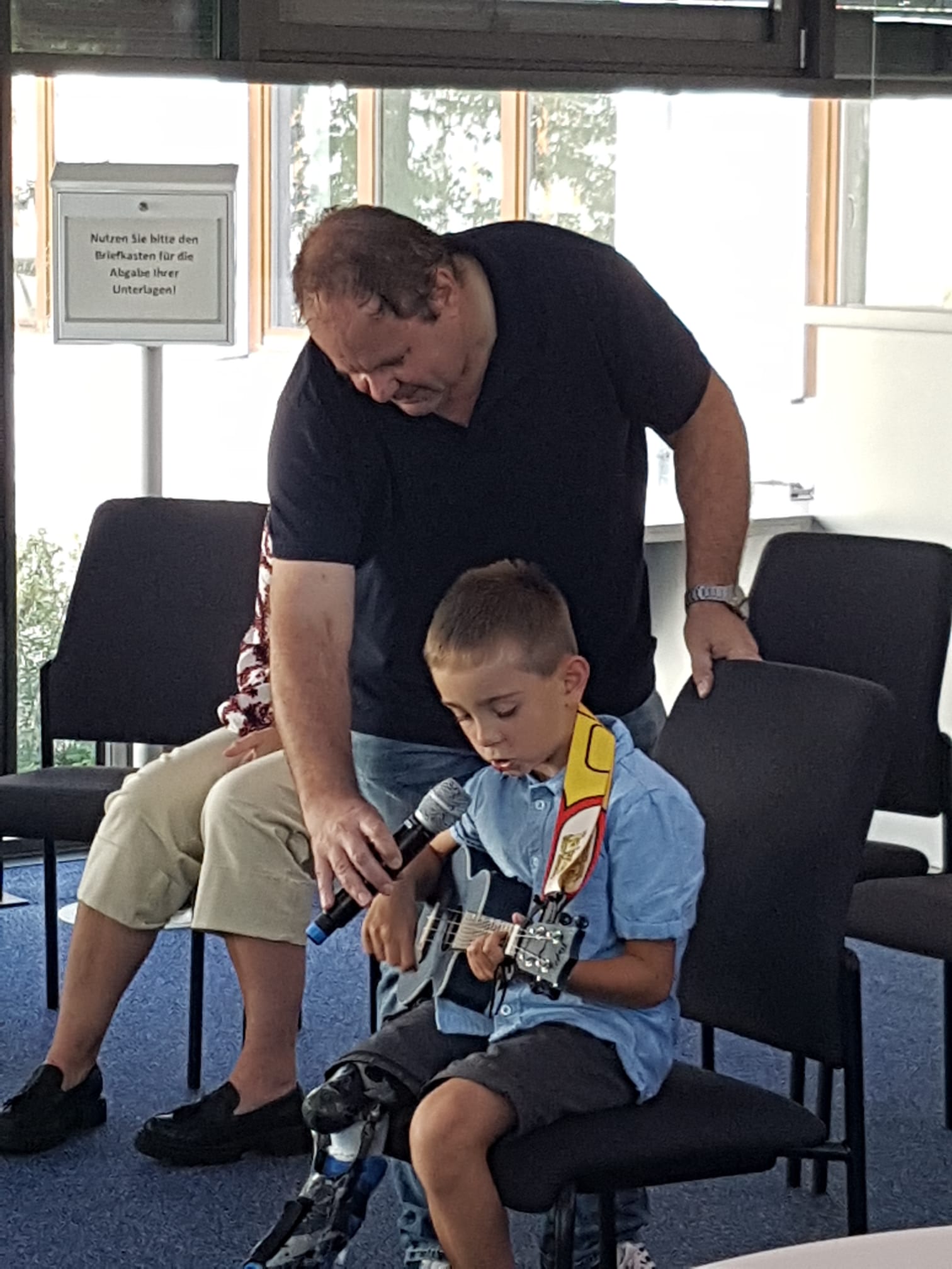 So eröffnete die Trommelgruppe der Dr.-Pienitz-Schule aus Pirna die Vernissage mit zwei Trommelstücken. Zwischen den Redebeiträgen spielte Endrik ein paar Lieder auf der Ukulele und brachte das Publikum zum Mitsingen. Am Ende war es Stephan Walther, der mit einem Soloauftritt die Eröffnungsfeier gebührend beendete. Herr Walther ist ein Mitglied der vierköpfigen Pirnaer Band Paradiso, die selbst auch Teil der Wanderausstellung ist.