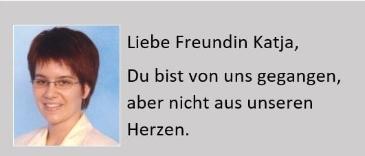 Die Trauerfeier von Katja findet am Dienstag, den 10.08.2021 um 14:00 Uhr auf dem Markusfriedhof in Dresden statt."
