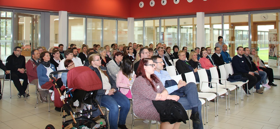 Anschließende Schulführungen ermöglichten es den Besuchern und Gästen, die Konzeption der Schule mit ihren verschieden Abteilungen kennenzulernen. Anschließend fand man sich im weitläufigem Foyer zusammen, wo eine Präsentationsstrecke zum Thema „Miteinander arbeiten, Barrieren abbauen, Vielfalt entdecken“ die zahlreich mitwirkenden Unternehmen, Akteure und Institutionen vorstellte. Hier konnte man sich kennenlernen und Erfahrungen und Informationen zur Umsetzung von Inklusion in Unternehmen austauschen.