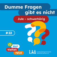 ![]() | Dumme Fragen - Jule (schwerhörig)Jule hat erst vor 2 Jahren gemerkt, dass sie schwerhörig ist und hat sich seitdem intensiv damit auseinandergesetzt. Wie sie ihren Alltag erlebt und wie sich ihr Leben seitdem verändert hat, erzählt sie uns in dieser Ausgabe von "Dumme Fragen gibt es nicht" und in den kommenden Episoden unseres Podcasts. |