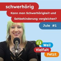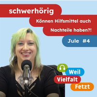 ![]() | Können Hilfsmittel auch Nachteile haben?! | Jule #4Jule hat erst vor 2 Jahren gemerkt, dass sie schwerhörig ist und hat sich seitdem intensiv damit auseinandergesetzt. Hilfsmittel sollen Betroffenen helfen, ihren Alltag selbstbestimmt erleben zu können. Das diese Hilfsmittel aber auch manchmal Nachteile haben können, erzählt sie uns in dieser Episode unseres Podcasts. |