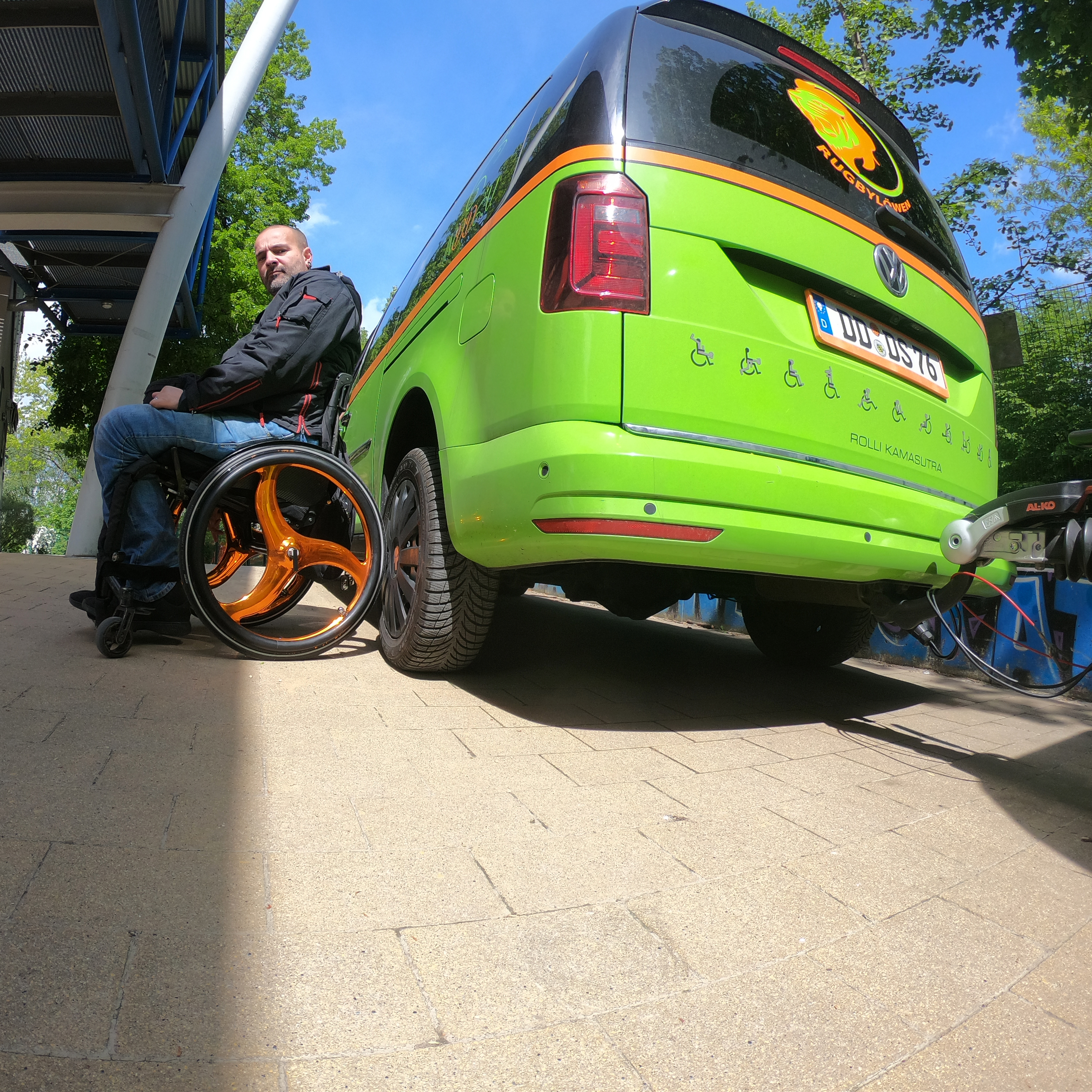 Ein anderes Beispiel ist das Straßen- und Tiefbauamt in Dresden. Dort befindet sich der Rollstuhl Parkplatz im Dreck. Wenn es regnet, geht das gar nicht. Man versinkt im Schlamm und macht sich das ganze Auto dreckig. Dann kommt man zu einer Rampe, die ca. 15 % Steigung hat. Warum macht man so was - 6 % sind erlaubt. Und dann ist die komplette Rampe aus Kopfsteinpflaster. Es ist Blödheit. Ich habe es schon ein paar Mal angesprochen, weil ich öfter dort bin. Weil ich auch dort schon Projekte mit der Stadtverwaltung hatte. Die Rollstuhlfahrer müssen dorthin, weil sie sich in genau dem Gebäude in der 2. Etage ihren blauen Parkausweis abholen müssen. Auch runter ist die Rampe eine Katastrophe, denn wenn du es mit dem Bremsen nicht schaffst, stürzt du. Man kann den Rollstuhl auch nicht auslaufen lassen, da nur 80 cm Platz bis zur Rabatte sind. Du musst wirklich voll bremsen, sonst liegst du im Blumenbeet. Bei Schnee und Eis hätte man dort keine Chance. Und das sind öffentliche Sachen, wo ich es einfach nicht nachvollziehen kann. Wo du als Rollstuhlfahrer oder als Blinder oder als körperlich eingeschränkter Mensch komplett ausgebremst wirst.