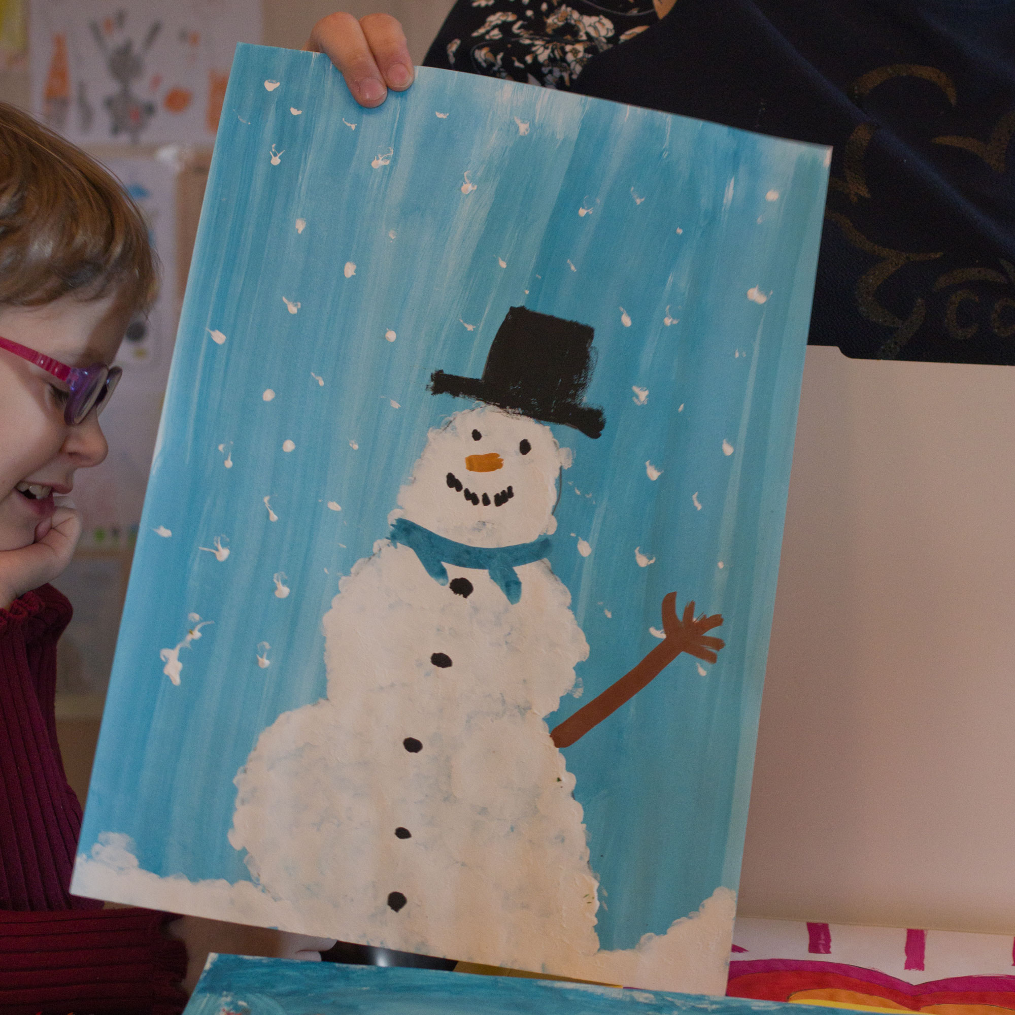 Selbst im Kunstunterricht macht Helene alles mit und malt bunte Bilder.