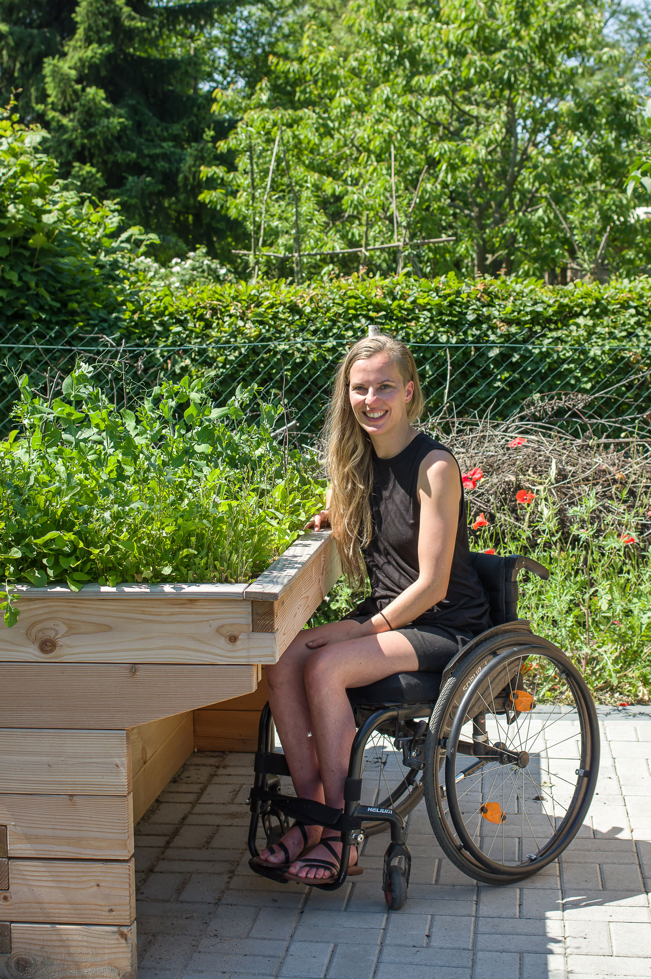Klar helfen hier einem alle. Aber Barrierefreiheit heißt auch Selbstständigkeit. Das ist total wichtig. Es erleichtert auch die Arbeit und stärkt das Selbstbewusstsein, wenn man nicht ständig um Hilfe bitten muss. Auch andere Menschen profitieren erfreulicher Weise zukünftig von der Barrierefreiheit, die für meine Stelle im SALVIA geschaffen wird. Mit einigen Dingen muss man sich, wie auch im Alltag arrangieren. Z.B. erschwert schlechtes Wetter oder matschiger Boden das Rollifahren. Ich persönlich komme mittlerweile hier gut klar. Wir haben auch zwei unterfahrbare Hochbeete. In ihnen konnte ich alles selbst aussäen und somit als erste Rollifahrerin erproben, wie das Gärtnern im Hochbeet mit Rollstuhl funktionieren kann. Die Hochbeete sind echt toll.