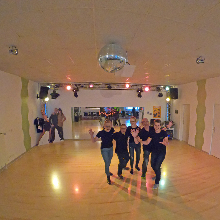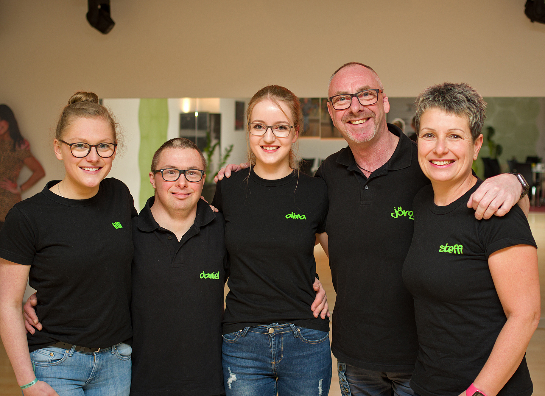 Wir hatten von außen noch kein schlechtes Feedback. Das rührt vielleicht daher: Daniel ist unser Sohn. Der gehört hier dazu. Er empfängt hier Leute. Er macht hier Kurse. Er ist Übungsleiterassistent. Die Lizenz hat er über den Landessportbund gemacht. Wir haben auch weitere Tänzer mit Down-Syndrom, die tanzen bei uns einfach in den normalen Kursen. Die kommen zum Inklusionskurs, aber die tanzen bei uns auch in den normalen Zumba-Kursen. Somit wissen eigentlich alle Teilnehmer Bescheid. Wenn einer hierher kommt, wird er von Daniel empfangen. Ganz normal.